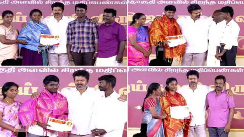 இவர்களுக்கு தமிழக வெற்றிக் கழகத்தின் தலைவர் விஜய் கல்வி விருது, சான்றிதழ், தங்க மோதிரம், கம்மல் மற்றும் ஊக்கத்தொகைகள் ஆகியவற்றை வழங்கினார். இதில், 423 மாணவ, மாணவிகளுக்கு பரிசுகள் வழங்கப்பட்டுள்ளன.