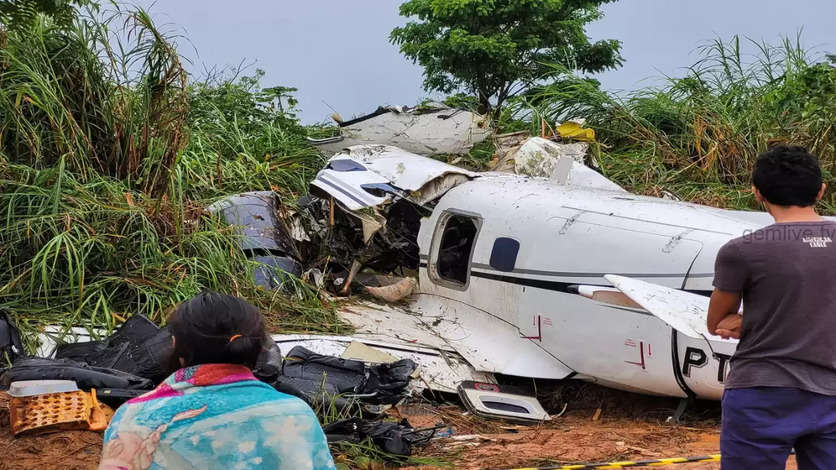 பிரேசில் நாட்டின் மடோ கிராஸ்ரோ மாகாணம் அமேசானியன் நகரிலிருந்து ராண்டனொபொலிஸ் நகருக்கு நேற்று சிறிய ரக விமானம் புறப்பட்டது. விமானத்தில் மொத்தம் 5 பேர் பயணித்தனர். அமேசான் வனப்பகுதியில் பறந்து கொண்டிருந்தபோது கட்டுப்பாட்டை இழந்த விமானம் திடீரெனத் தரையில் விழுந்து விபத்துக்குள்ளானது.