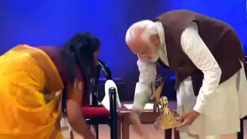 தமிழக பெண்ணின் காலில் விழுந்தார் பிரதமர் நரேந்திர மோடி..!