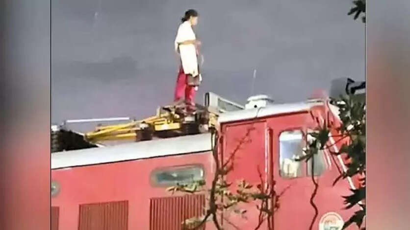 தாம்பரத்தில் பரபரப்பு..! ரயில் இஞ்சின் மீது திடீரென ஏறி நின்ற பெண்!