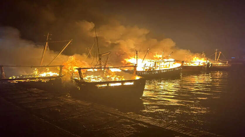 அதிகாலையில் அதிர்ச்சி..! துறைமுகத்தில் 40 படகுகள் தீயில் எரிந்து நாசம்..!