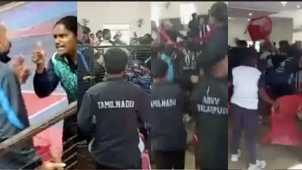 போட்டியில் விதிகளை மீறியதாக முறையிட்ட தமிழக வீராங்கனைகள், தமிழக பயிற்சியாளர் பாண்டியன் மீது பஞ்சாப் போட்டியாளர்கள் தாக்குதல் நடத்தினர்.