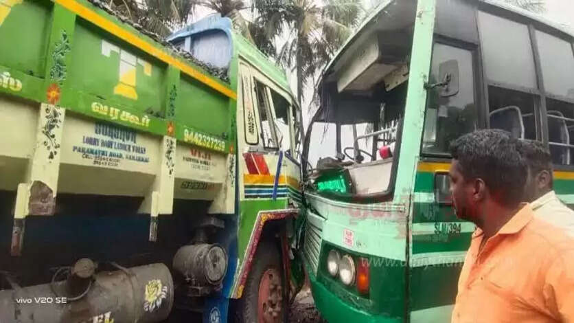 பேருந்தில் 30க்கும் மேற்பட்ட பயணிகள் அருகில் உள்ள தோல் தொழிற்சாலை, ஷூ தயாரிப்பு நிறுவனங்கள் உள்ளிட்ட பகுதிகளுக்கு வேலைக்காகச் சென்றுகொண்டிருந்தனர். இந்நிலையில் தனியார் கம்பெனி அருகே சென்றபோது எதிர்த்திசையில் பேர்ணாம்பட்டிலிருந்து ஆம்பூர் நோக்கி வந்த லாரி அதிவேகமாக பேருந்தின் மீது மோதியது .