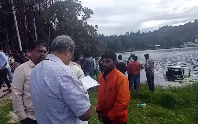 உயிர் தப்பிய சுற்றுலா பயணிகள் !ஏரிக்குள் பாய்ந்த கார்..!