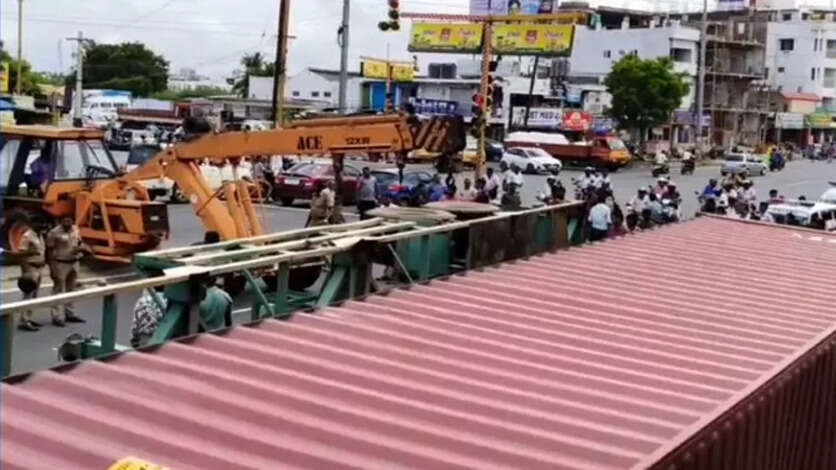 இந்த விபத்தில் கன்டெய்னர் லாரி கவிழ்ந்தது. இதனால், அந்த பகுதியில் வாகன போக்குவரத்தும் பாதிக்கப்பட்டது. அதனை சரி செய்யும் பணியில் போலீசார் ஈடுபட்டனர். அந்த பகுதியை கடந்து சென்ற மக்கள் சில மணிநேரம் வரை பெரிதும் பாதிக்கப்பட்டனர்.