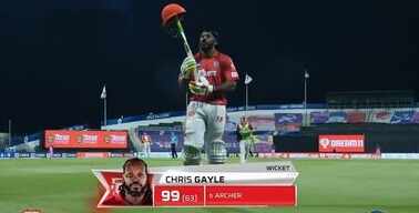 முதலில் களமிறங்கிய கிங்ஸ் லெவன் பஞ்சாப் அணியில், ‘யுனிவர்சல் பாஸ்’ கிறிஸ் கெய்ல் அதிரடியாக விளையாடி சிக்ஸர் மழை பொழிந்தார். 63 பந்துகளில் 8 பவுண்டரி, 6 சிக்ஸர்கள் விளாசி 99 ரன்கள் சேர்த்து ஆட்டமிழந்தார்.