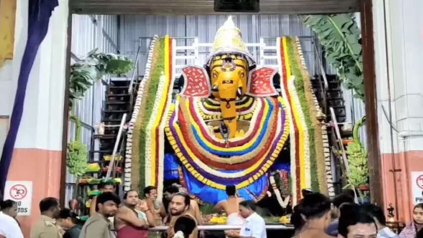 அந்தவகையில் இந்த ஆண்டும் சிறப்பு வழிபாடு நடைபெற்றது. அந்தவகையில் இந்த ஆண்டும் சிறப்பு வழிபாடு நடைபெற்றது. விநாயகர் சதுர்த்தியை முன்னிட்டு இக்கோயிலில் உள்ள ஆசியாவிலேயே உயரமான ஒரே கல்லால் ஆன விநாயகர் சிலைக்கு 4 டன் (4000 கிலோ) மலர்களால் ராஜ அலங்காரம் செய்யப்பட்டுள்ளது. செவ்வந்தி, ரோஜா, அருகம்புல் ஆகிய பூ மாலைகளை விநாயகருக்கு அலங்காரமாக அணிவிக்கப்பட்டுள்ளது.