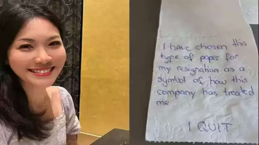 சிங்கப்பூரில் நிறுவனம் ஒன்றில் இயக்குநராக பணியாற்றியவர் ஏஞ்சலா யோ. இவர், நிறுவனத்தில் இருந்து தனது பதவியை ராஜினாமா செய்தார். இதற்கான கடிதத்தை அவர், கழிப்பறை காகிதத்தில் அனுப்பி உள்ளார்.