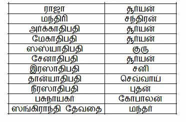 இந்த ஆண்டு மந்திரியாக சந்திரன் பகவான் வருவதால் சரியான நேரத்தில் மழை பெய்யும். புதுவகை விவசாய உற்பத்தி உண்டாகும்.