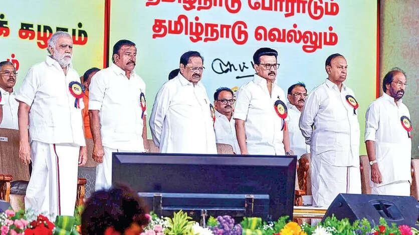 திமுகவின் உயிர் மூச்சு கொள்கையான மாநில சுயாட்சி முழக்கம் அரை நூற்றாண்டு கடந்த நிலையில் இன்னும் மீட்கப்படாத நிலையில், மாநிலங்களின் மிச்சம் இருக்கும் உரிமைகளையும் மத்திய பாஜக அரசு பறிக்கிறது. தவிர, நாட்டில் மாநிலங்களே இல்லாத நிலையை உருவாக்க வேண்டும் என்ற ஆர்எஸ்எஸ் கருத்தியலை செயல்படுத்தவும் பார்க்கிறது. இந்த சூழலில் மாநில சுயாட்சி கருத்தியலுக்கு செயல்வடிவம் கொடுக்க, உயர்நிலை குழுவை நியமித்த தமிழ்நாடு அரசுக்கு பொதுக்குழு பாராட்டு தெரிவிக்கிறது.