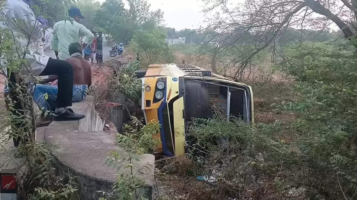 காலையில் நடந்த சோகம்..! வாய்க்காலில் கவிழ்ந்த அரசு பேருந்து.. பெண் ஒருவர் பலி..!