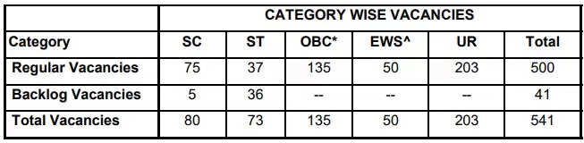 வகை வாரியாக காலியிடங்களின் எண்ணிக்கை: