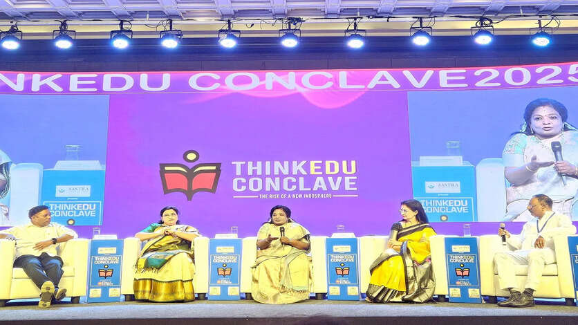 சென்னையில் உள்ள கிராண்ட் சோழா ஹோட்டலில் தி நியூ இந்தியன் எக்ஸ்பிரஸ் குழுமம் நடத்தும் ’கல்விச் சிந்தனை அரங்கு 2025’ இறுதிநாள் நிகழ்வு நடைபெற்றது. இந்த நிகழ்ச்சியில் ’பொது விவாதத்தில் மாறுபட்ட இடைவெளி’ குறித்து பாஜக மூத்த தலைவர் தமிழிசை செளந்தராஜன், காங்கிரஸ் எம்.பி., சசிகாந்த் செந்தில், திமுக எம்.பி., கனிமொழி சோமு, அதிமுகவின் கெளதமி ஆகியோர் கலந்துகொண்டு விவாதித்தனர். இந்த நிகழ்வுக்கு தினமணி ஆசிரியர் கி.வைத்தியநாதன் தலைமை வகித்தார்.